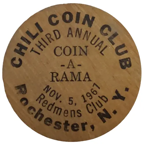 | Obverse lettering | CHILI COIN CLUB THIRD ANNUAL COIN -A- RAMA Nov. 5, 1967 Redmens Club Rochester, N. Y. |