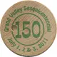 | Reverse lettering | Wooden Nickel Happy 150th Grand Valley |