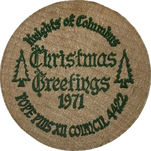 | Obverse lettering | Knights of Columbus Christmas Greetings 1971 POPE PIUS XII COUNCIL 4422 |