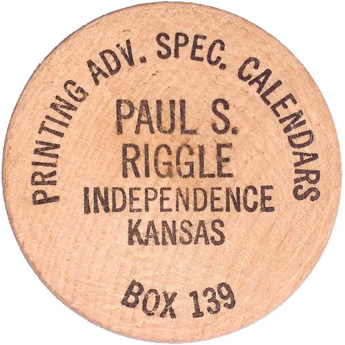 | Chữ khắc mặt trước | PRINTING ADV. SPEC. CALENDARS PAUL S. RIGGLE INDEPENDENCE KANSAS BOX 139 |