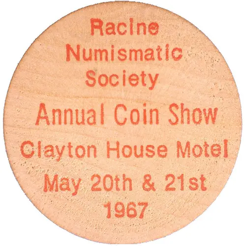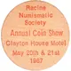 Racine Numismatic Society Annual Coin Show Clayton House Motel May 20th & 21st 1967