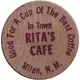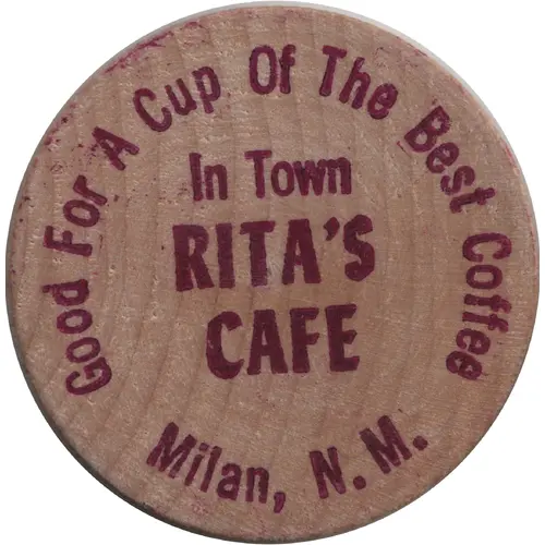 | Obverse lettering | Good For A Cup Of The Best Coffee In Town RITA`S CAFE Milan, N. M. |