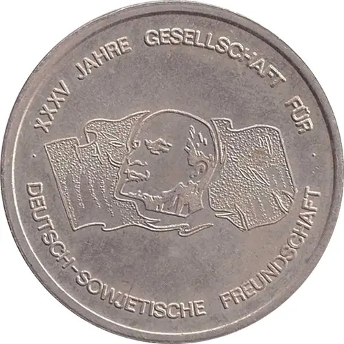 | Legenda do anverso | XXXV JAHRE GESELLSCHAFT FÜR DEUTSCH-SOWJETISCHE FREUNDSCHAFT |