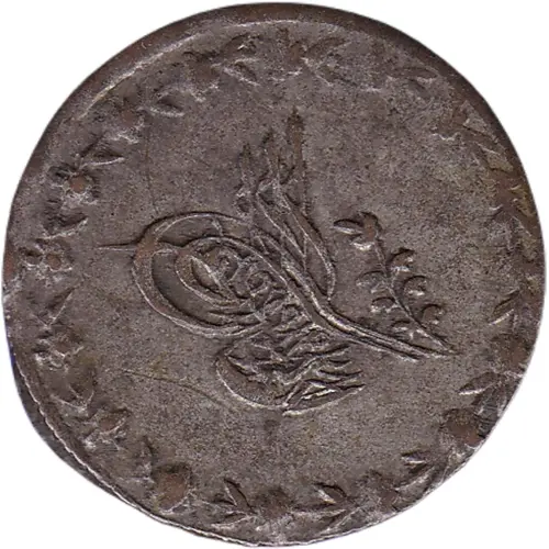 | Obverse description | Toughra with flower within tulip ring |