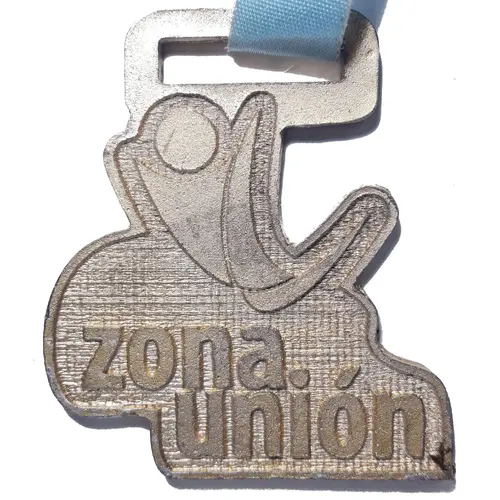 توضیحات روی مدال Zona Unión logo, stylized gymnastic athlete and name below.