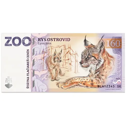 | Obverse lettering | ZOO RYS OSTROVID 160 Lynx lynx ŠTÁTNA TLAČIAREŇ CENÍN NAŠE ZOO M. KREJCAR, M. GÁBRIŠ, M. WICHNEROVÁ |