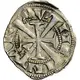 | Descripción del anverso | Double shifted cross, the longer one dividing an inner circle and the legend. |